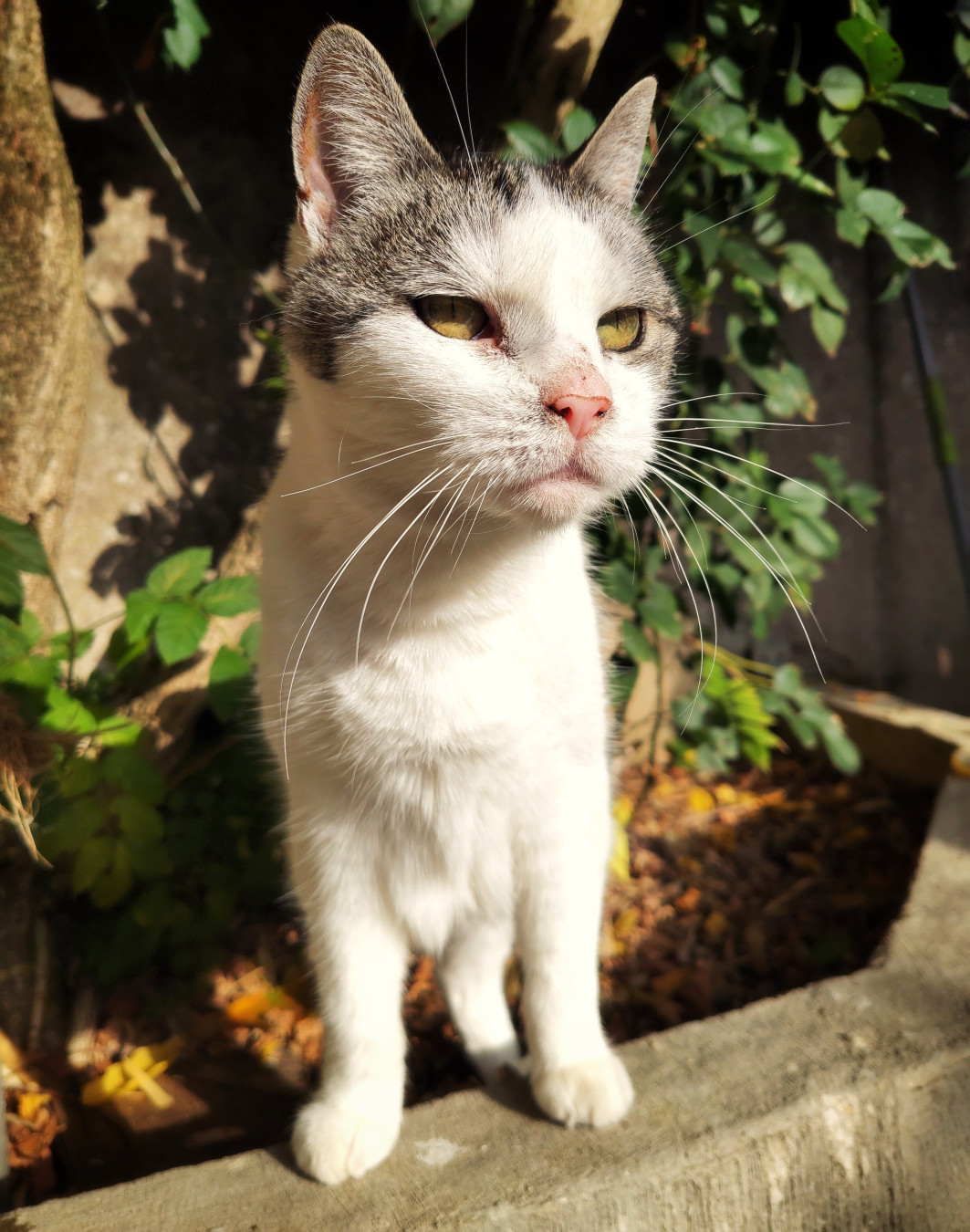This black and white cat now regularly visits my neighbour’s overgrown lawnmower #cat #caturday