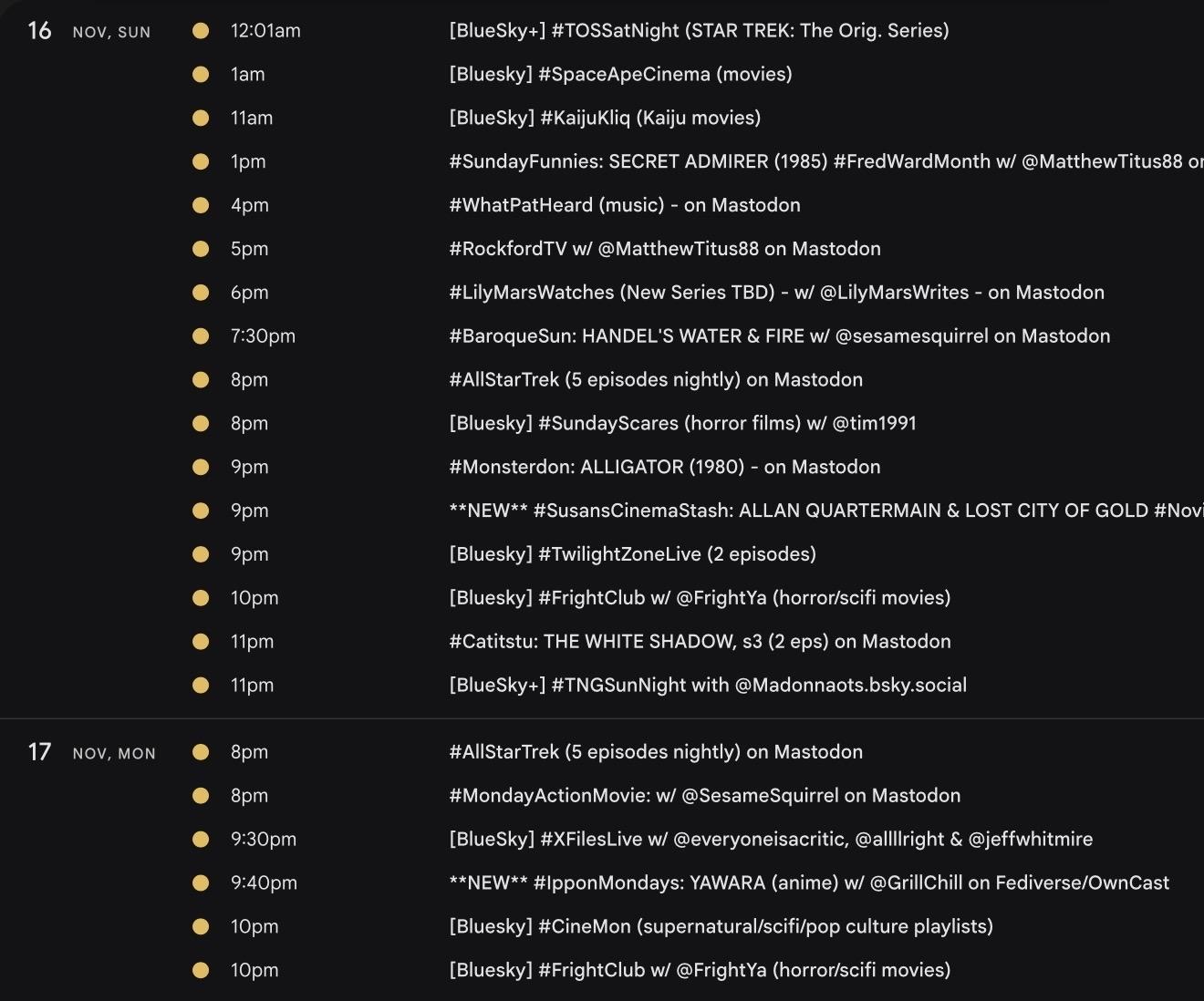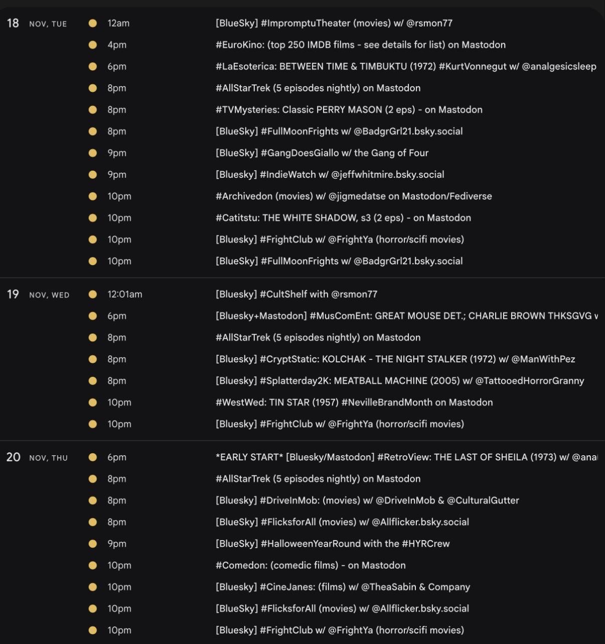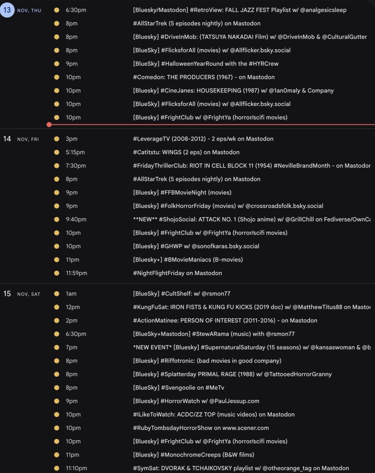 πΊIt's the weekly THU-THUπ #Mastodon/ #Fediverse #WatchPartyCalendar π for Nov. 13-20, 2025