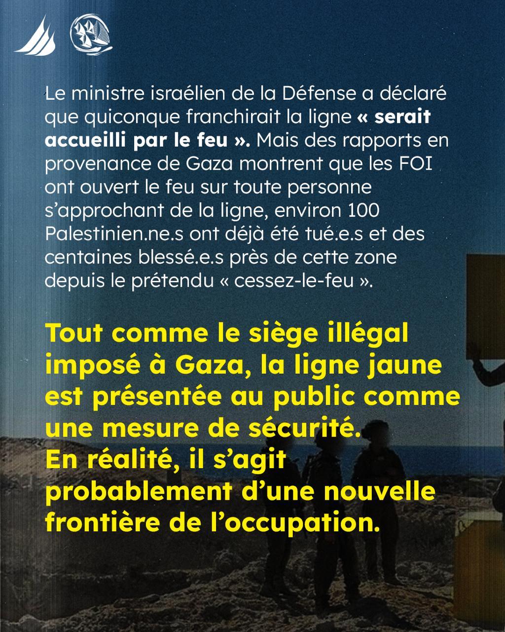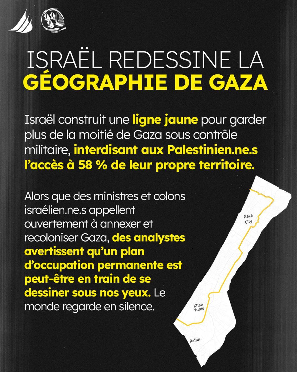 🇵🇸 A #Gaza #Israel interdit aux Palestinien.ne.s l’accès à 58 % de leur propre terre en construisant une Ligne Jaune plaçant plus de la 1/2 de la bande sous contrôle militaire.