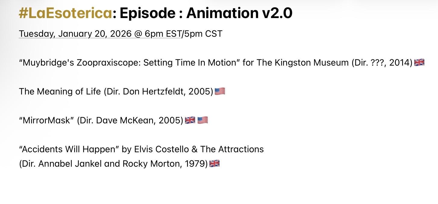 Join me Tuesday @ 6pm EST/5pm CST when #LaEsoterica further explores experimental animation. Feature Presentation: “MirrorMask” (Dir. Dave McKean, 2005)🇬🇧🇺🇸. Playlist available here (https://youtube.com/playlist?list=PL2Zslnc5XTfu-sttLPLEiCsVkf8_ThFDw&si=MU9yxazr4I-vBLZd)