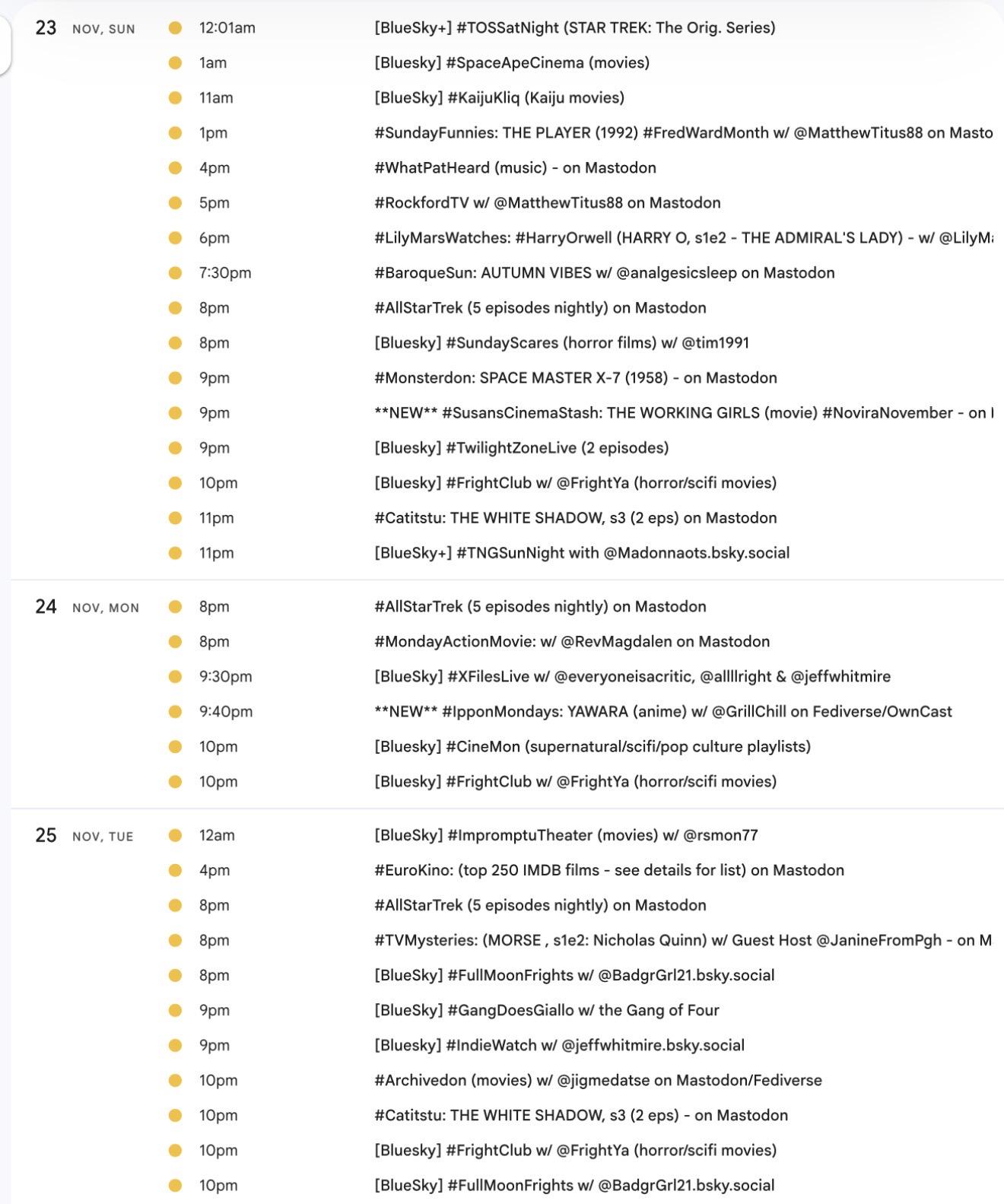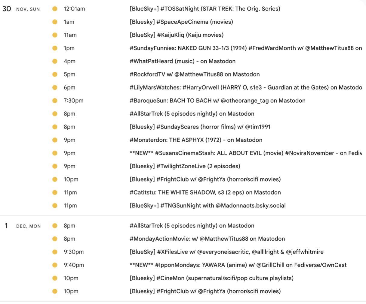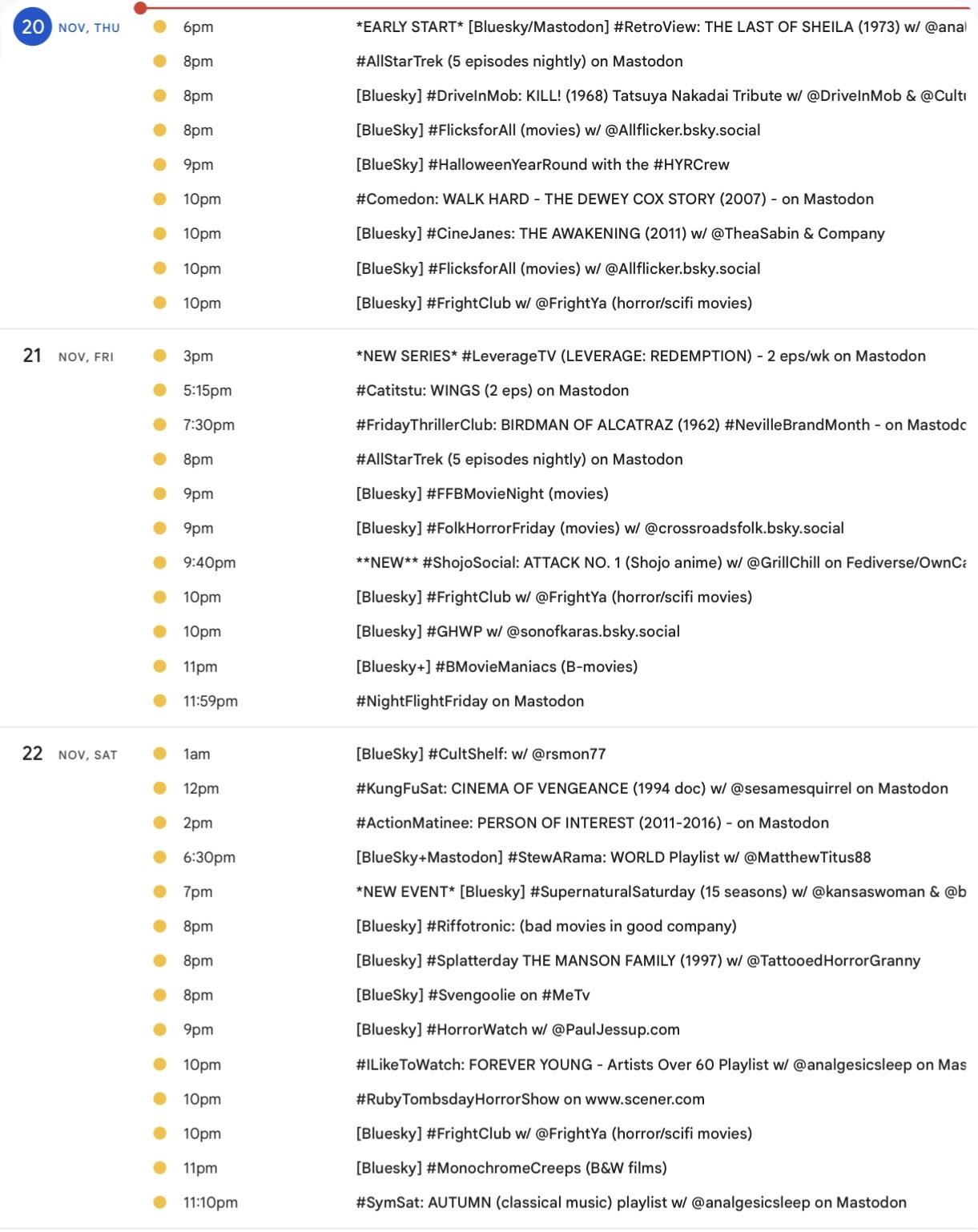 📺It's the weekly THU-THU🐘 #Mastodon/ #Fediverse #WatchPartyCalendar 📅 for Nov. 13-20, 2025