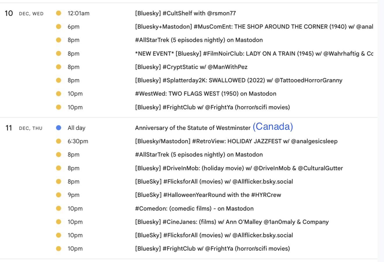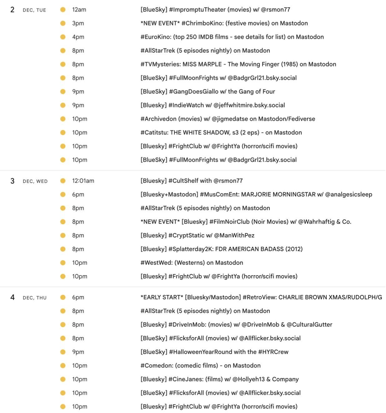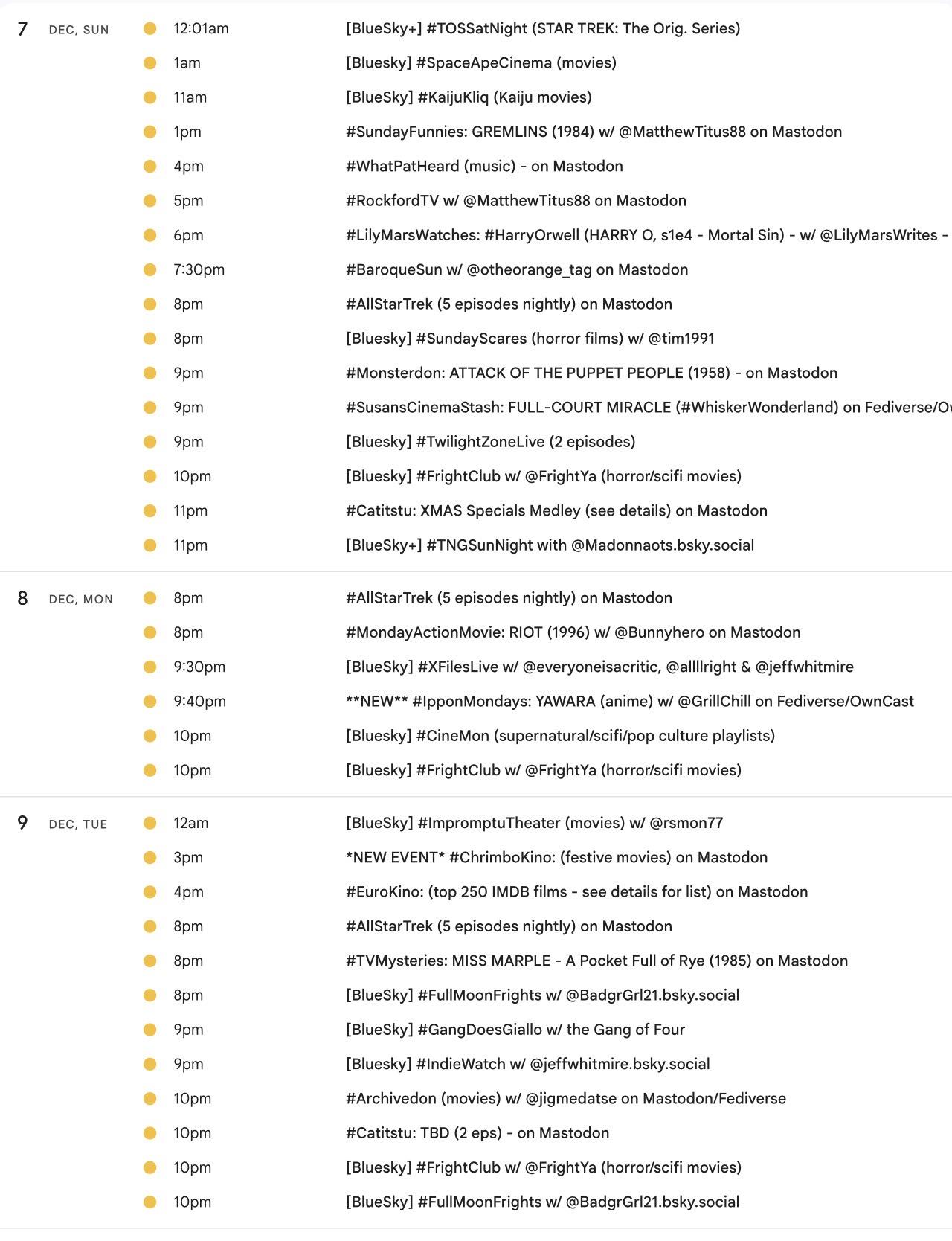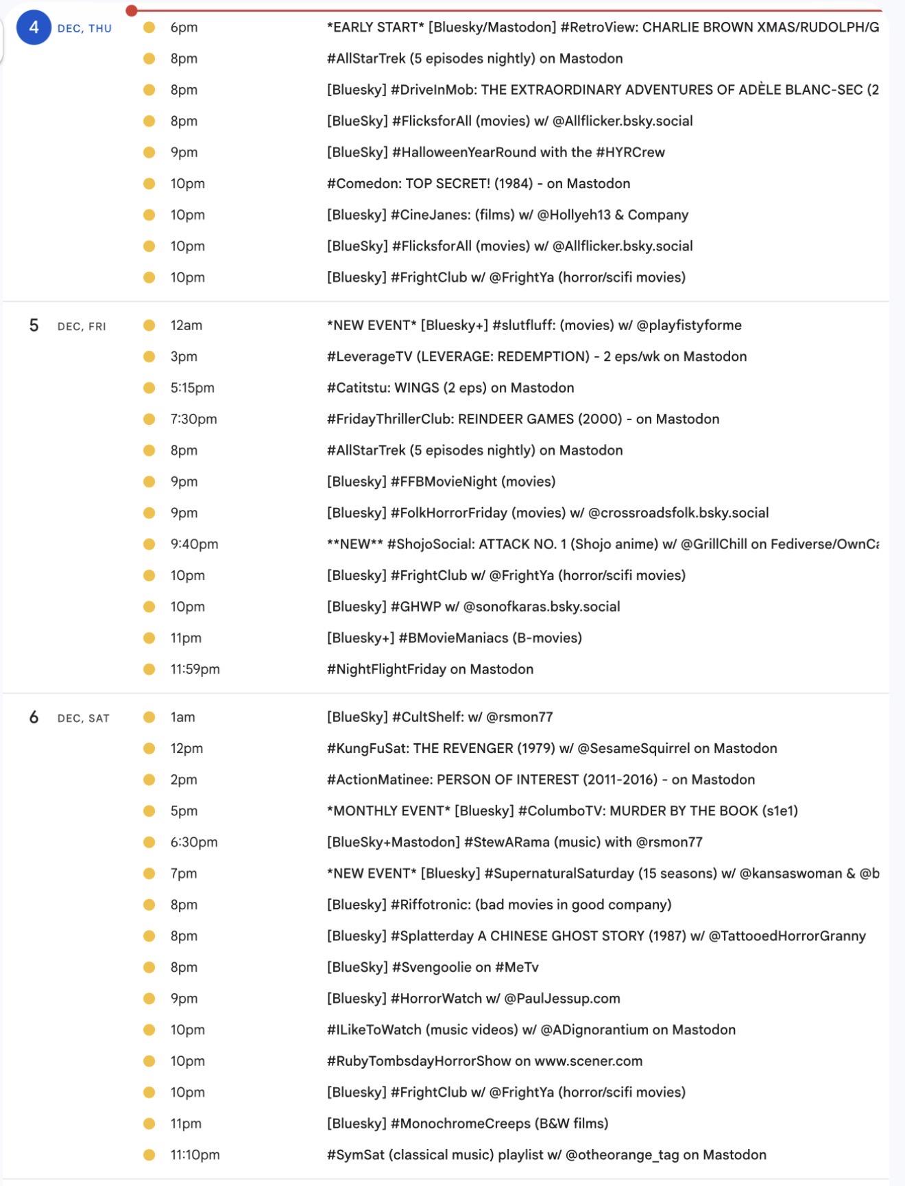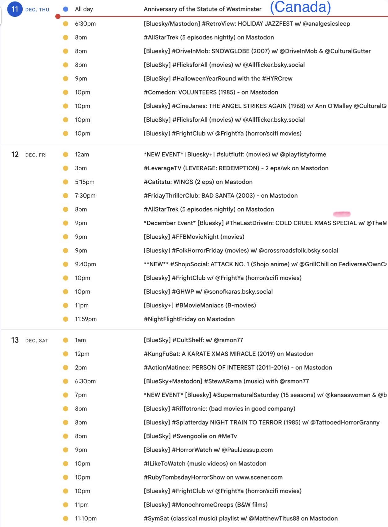 📺 It's the weekly #Mastodon/ #Fediverse #WatchPartyCalendar for Dec. 4-11, 2025 ❄️ (Thu-Thu)