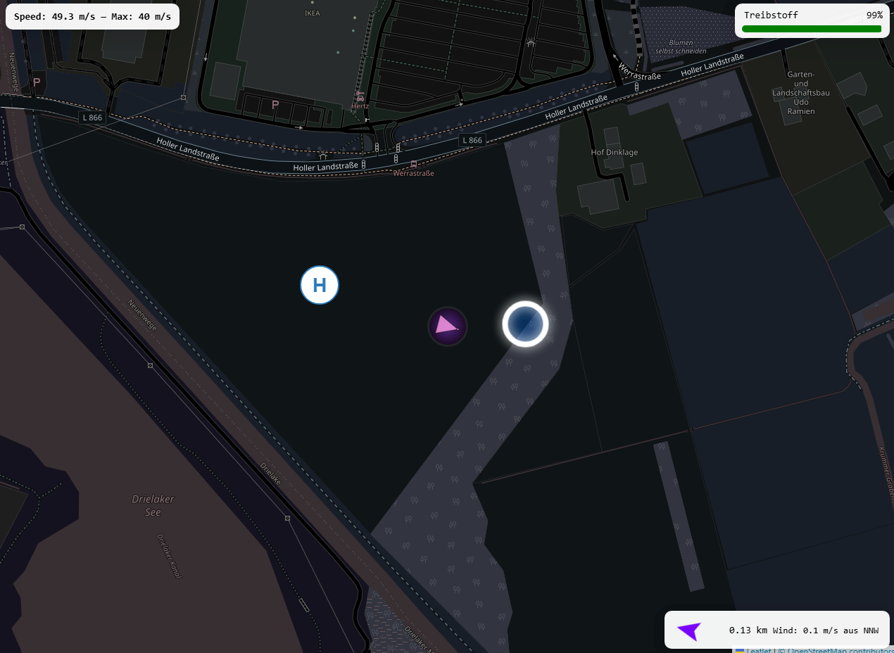 Der Prototyp ist einfach; Schiffe fahren automatisch. Die Simulation läuft mit dem 500-fachen der Echtzeit.