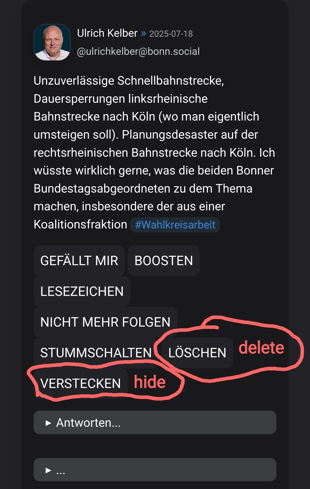 It seems both options delete the post from my view. I only don't know whats the difference beside that.